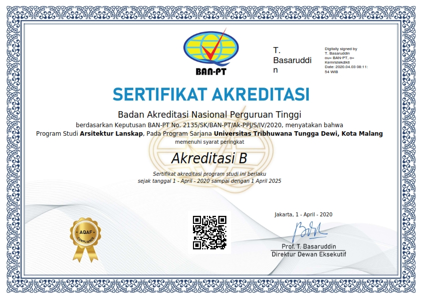 | S1 Arsitektur Lanskap | B | 1 April 2020 – 1 April 2025 | Download |