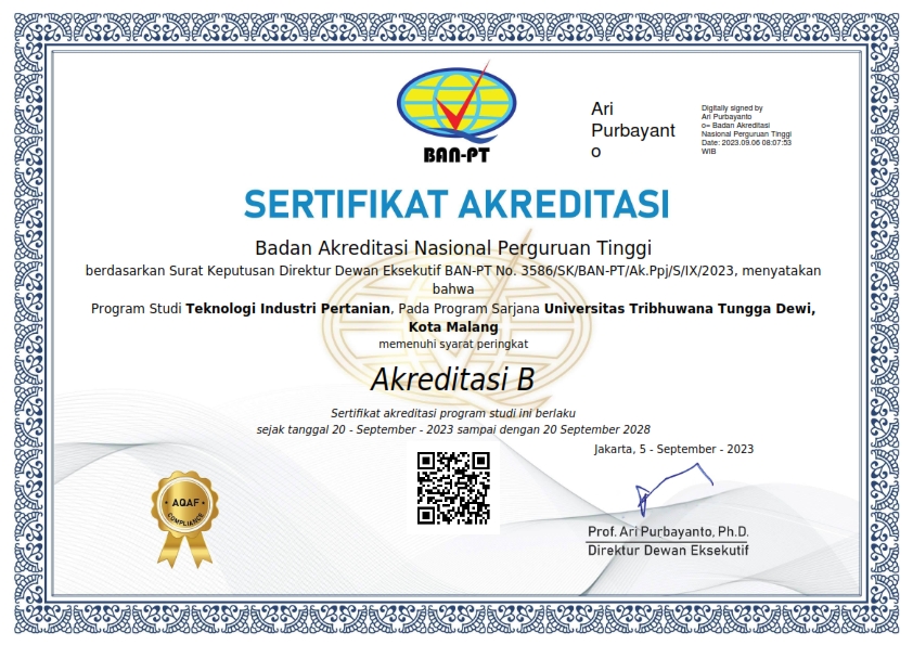 | S1 Teknologi Industri Pertanian | B | 19 September 2018 – 19 September 2023 | Download |