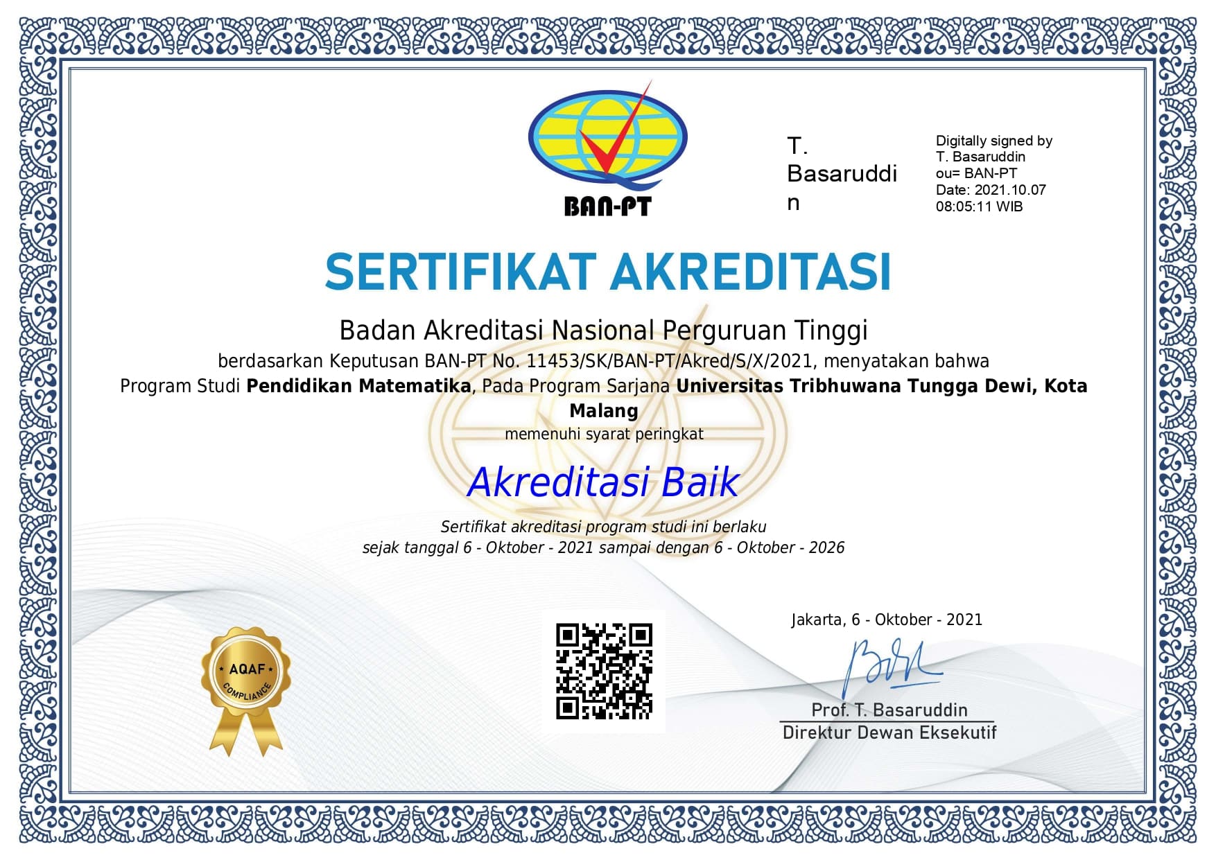 | S1 Pendidikan Matematika | Baik | 6 Oktober 2021 – 6 Oktober 2026 | Download |